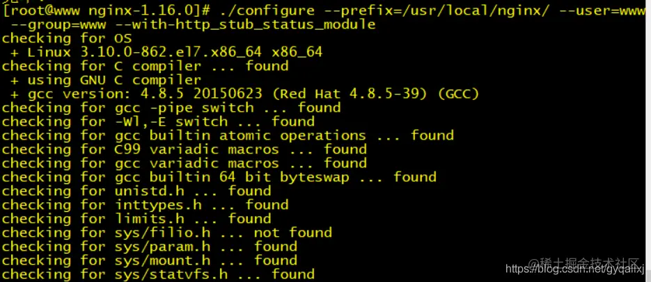 ./configure --prefix=/usr/local/nginx/ --user=www --group=www --with-http_stub_status_module