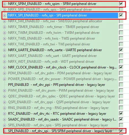 nRF_Drivers 中勾选SPI及SPIM相关选项