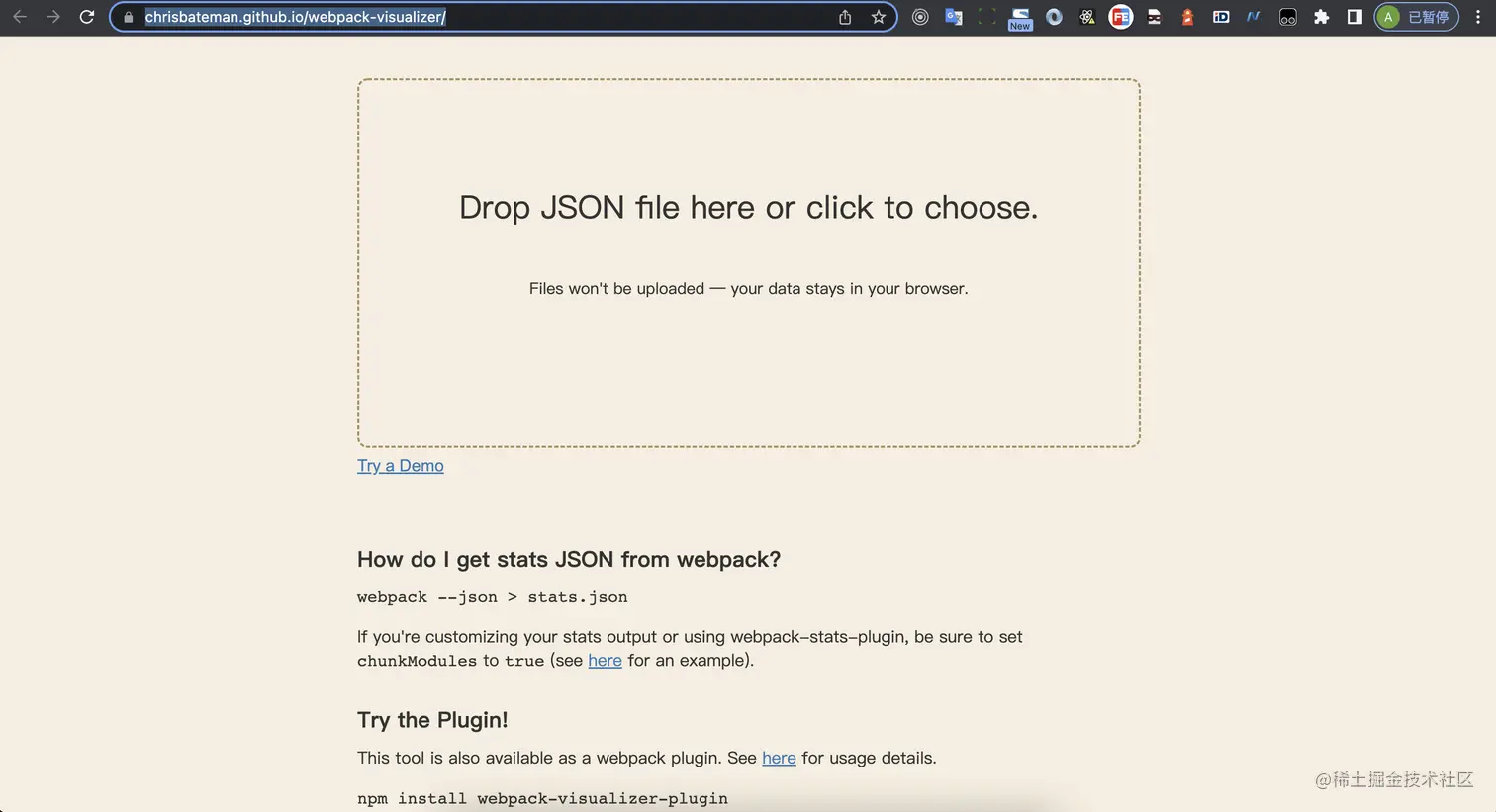 直接打开analyse,把生成的stats.json上传上去即可