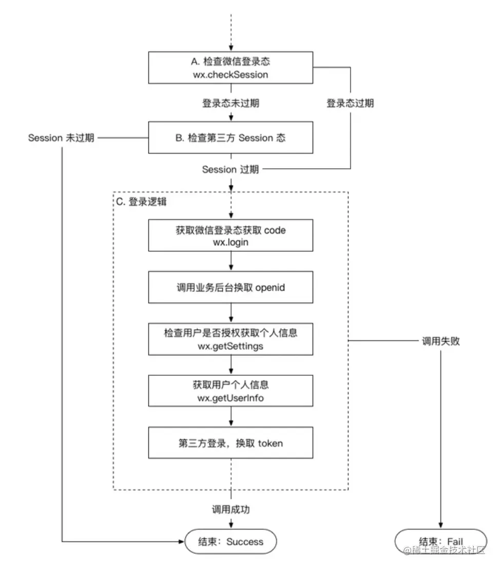 这种方法需要将本地存储的登录态发送到小程序的服务端,服务端判断为无效登录态时再返回需重新执行登录过程的消息给小程