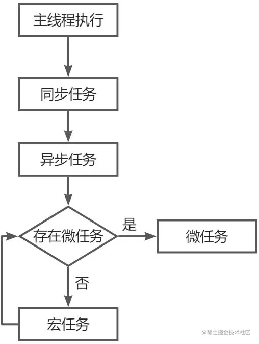 注意:处理过程中,遇到的异步代码,会加入到微任务或者宏任务中,也是为什么宏任务执行时会查看有没有微任务,因为一个宏任务里面还可能存在宏任务和微任务。并不是执行完了微任务,新加入的微任务就不去检查。