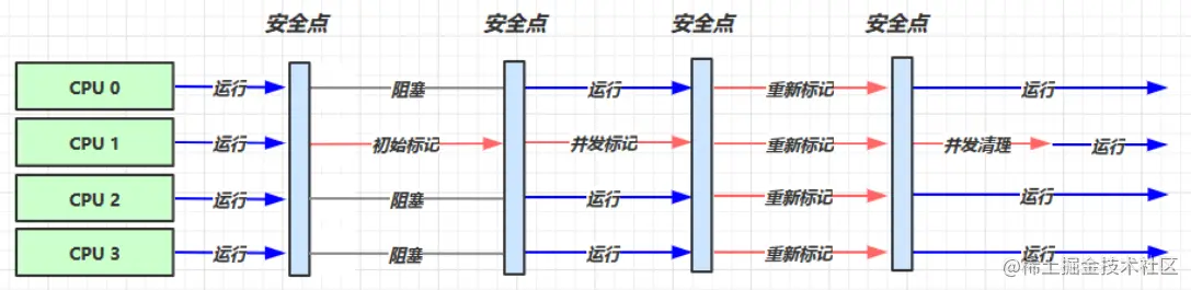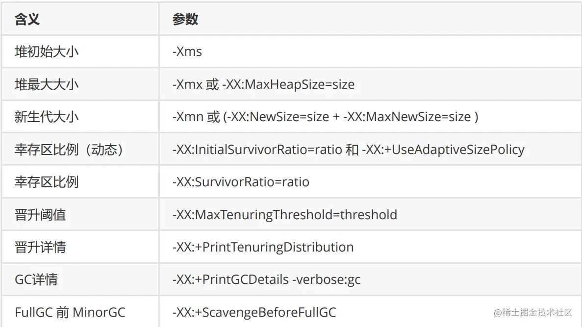 -XX:+CMSScavengeBeforeRemark :新生代的对象引用老年代的对象,重新标记时先对新生代进行垃圾回收