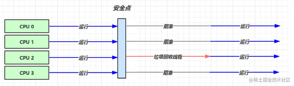 垃圾回收后可能会改变内存空间的地址,所以要设定安全点让进程停下来