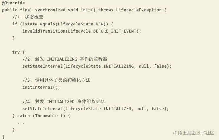 我们来简单看一下LifeCycleBase的init方法,如下: