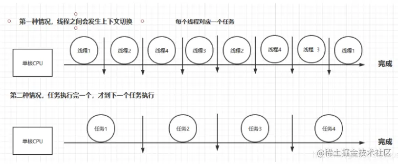 - 使用多线程执行这些任务,会发生线程上下文切换。