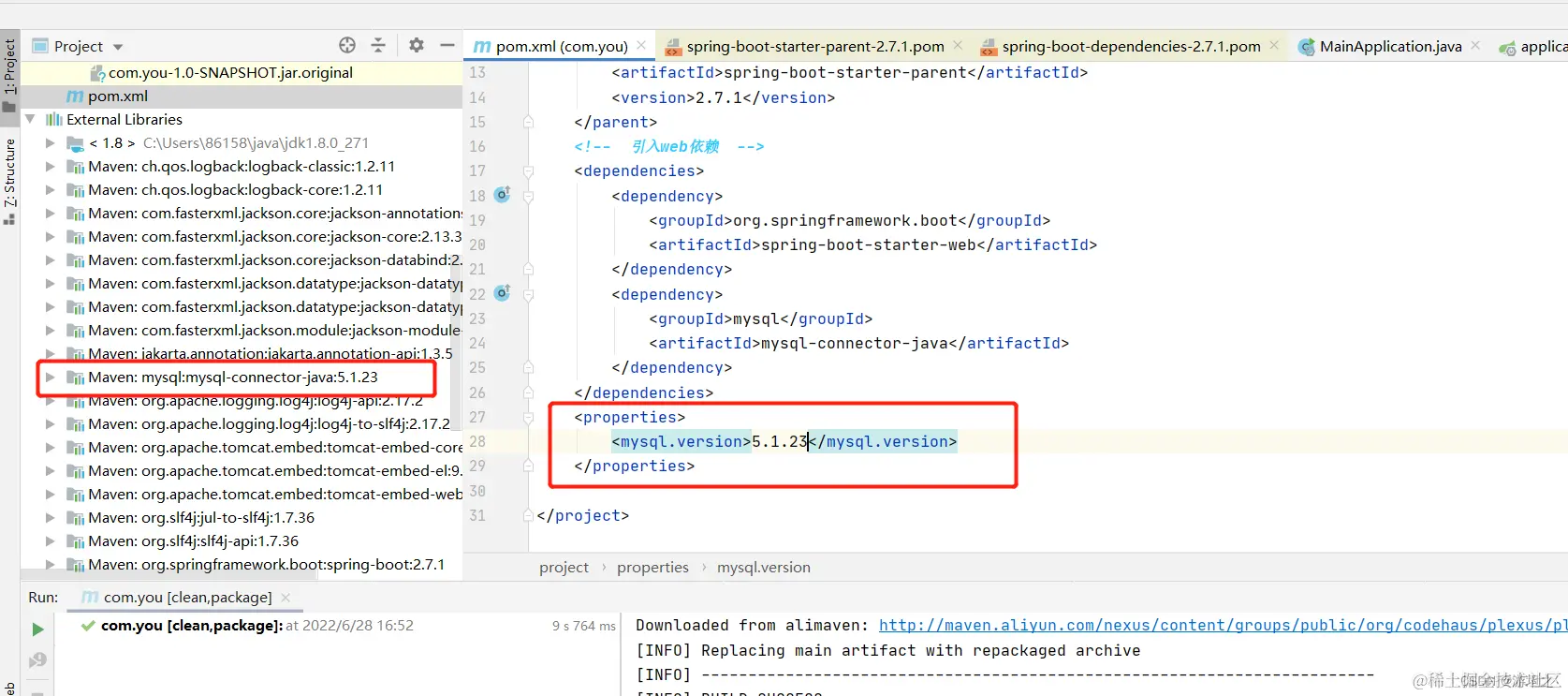 如果我们需要使用自己的版本号,而且与默认的版本号冲突,这时候可以选择手动设置版本号,这里用了Maven的就近加载原则。