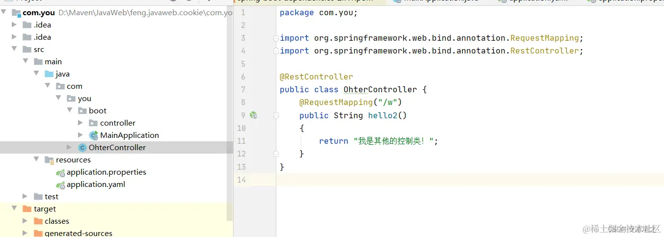 此时,我编写一个其他的控制类,放在与boot同级的位置,也就是不满足上面的条件