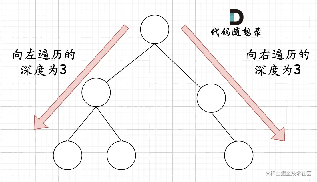 哪有录友说了,这种情况,递归向左遍历的深度等于递归向右遍历的深度,但也不是满二叉树,如题: