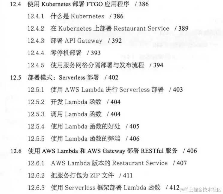 第12章介绍了可用于部署服务的各种部署模式,包括虚拟机、容器和Serverless模式。还介绍了使用服务网格的好处,服务网格是在微服务架构中处理服务间通信的一个网络软件层。