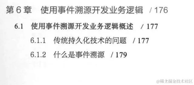 第6章以第5章为基础,解释了如何使用事件溯源模式开发业务逻辑,事件溯源模式是一种以事件为中心的设计思路,用来构建业务逻辑和持久化领域对象。