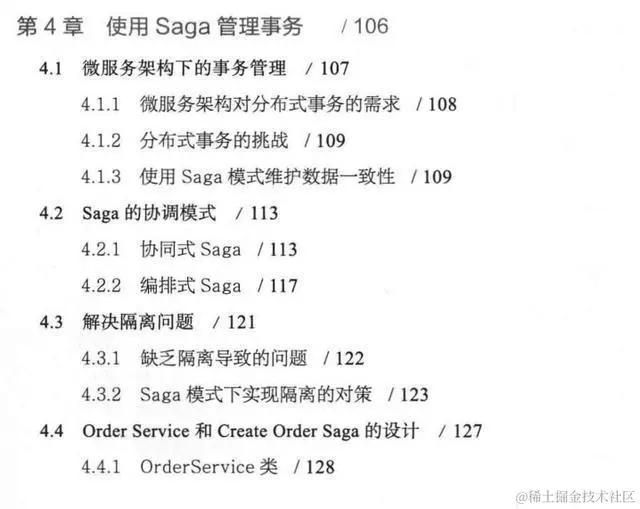 第4章介绍如何使用Saga模式维护服务间的数据一致性。 Saga 是通过传递异步消息的方式进行协调的一系列本地事务。