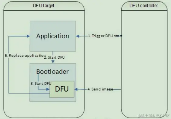 DFU(Device Firmware Update) 设备固件升级,而 OTA(Over The Air) 空中升级技术是DFU其中一种类型。其他类型包括:UART、USB和SPI等有线方式升级。