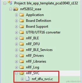 在工程中增加一个文件夹nRF_SVC,并添加以下文件: