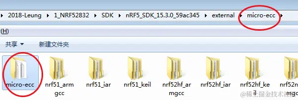 把下载的 micro-ecc-master.zip 解压,解压后拷贝到nRF5_SDK_15.3.0_59ac345\external\micro-ecc文件中,重新命名为micro-ecc