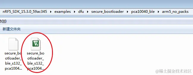找到SDK中 secure_bootloader 工程(nRF5_SDK_15.3.0_59ac345\examples\dfu\secure_bootloader\pca10040_ble\arm5_no_packs)