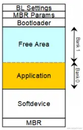 以下将分别说明 bootloader、settings、application 、升级包在DFU中的作用及展示它们在Flash中的布局。