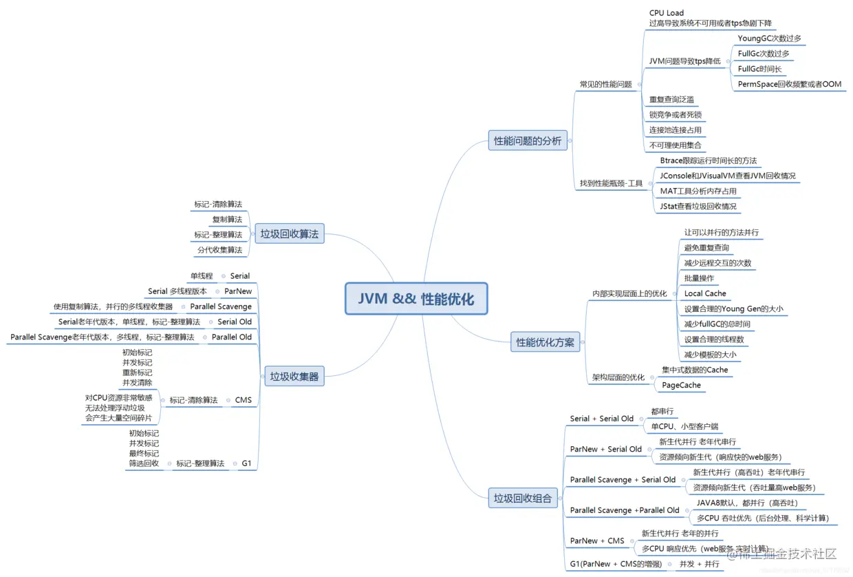 关于JVM与性能调优的知识点总结了一个思维导图,分析给大家