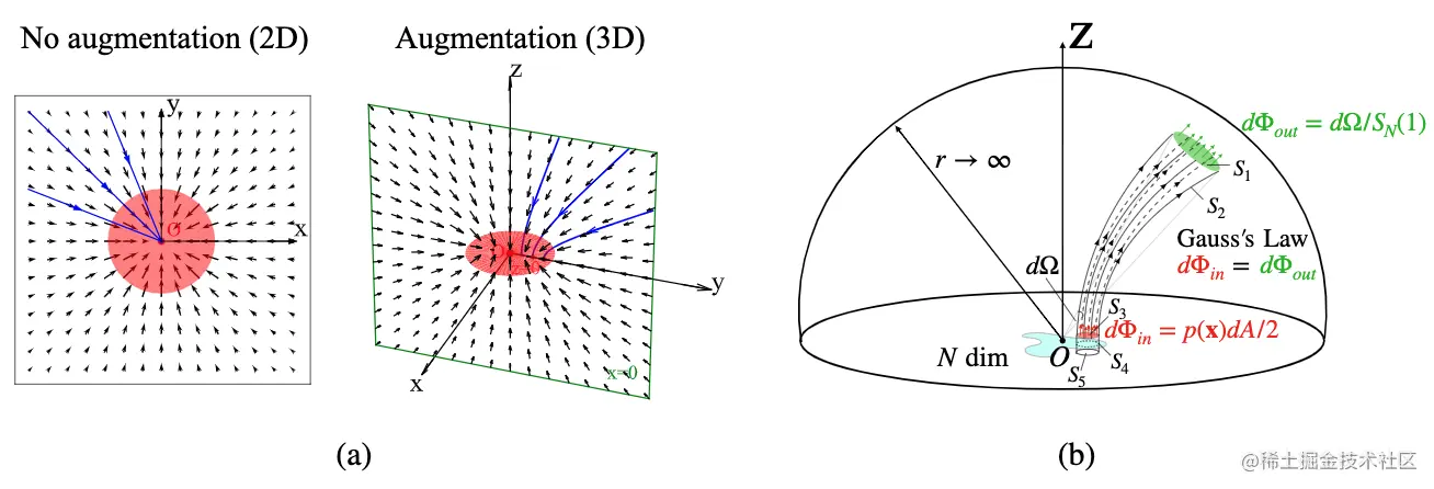 论文简介:We interpret the data points as electrical charges on the z=0 hyperplane in a space augmented with an additional dimension z, generating a high-dimensional electric field (the gradient of the solution to Poisson equation)./我们将数据点解释为空间中z=0超平面上的电荷,用一个额外的维度z增强,产生一个高维电场(泊松方程的解的梯度)。