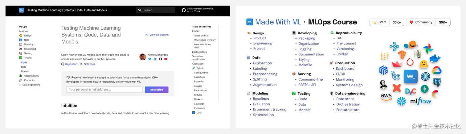 Repo 是 MLOps课程 Testing(测试板块)的一部分,包含了交互式 notebook。课程覆盖了大部分概念,并关联了构建ML系统的软件工程最佳实践知识。