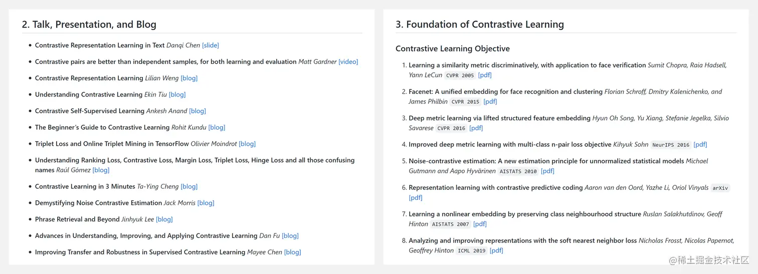 虽然对比学习最初在视觉任务上取得了成功,但近年来在对比 NLP 方面的出版物越来越多。当前的 NLP 模型严重依赖于有效的表示学习算法。清单包含以下主题: