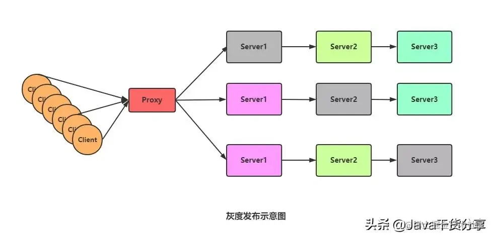 具体到服务器上, 实际操作中还可以做更多控制,譬如说,给最初更新的10台服务器设置较低的权重、控制发送给这10台服务器的请求数,然后逐渐提高权重、增加请求数。一种平滑过渡的思路, 这个控制叫做“流量切分”。