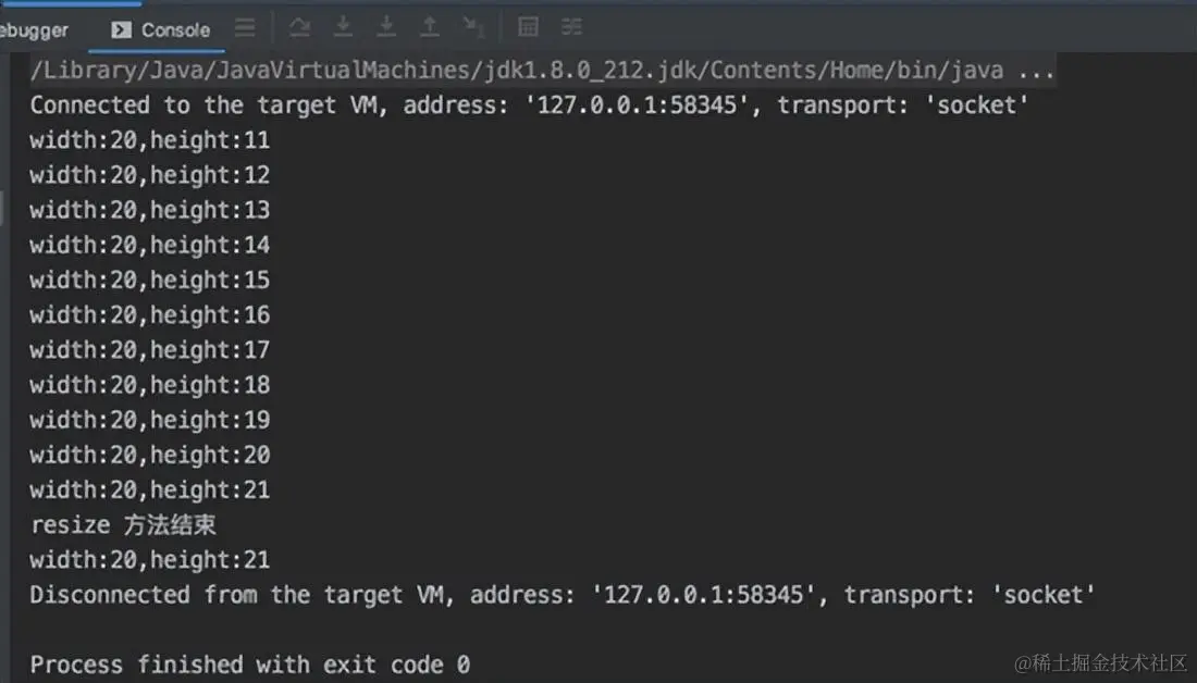 在测试类中创建 resize() 方法,根据逻辑长方形的宽应该大于等于高,我们让高一直自增, 知道高等于宽变成正方形: