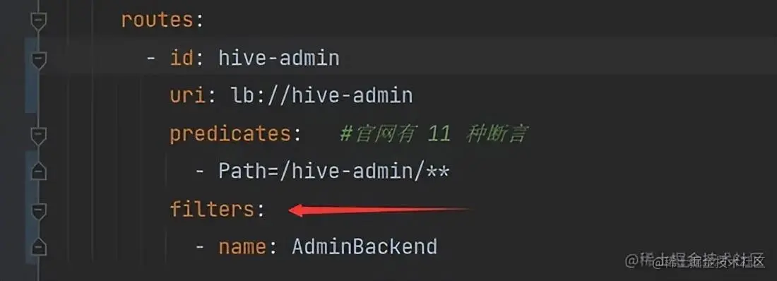 配置好之后我们从网关请求 /hive-admin/xxx 你会发现这个请求怎么都不会走到我们配置的 AdminBackendFilterFactory 过滤器, 直接就路由到目标微服务了。