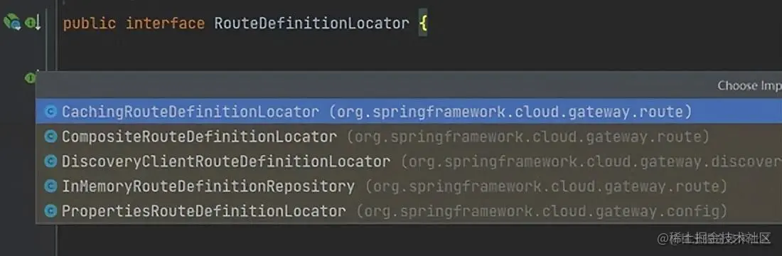 DiscoveryClientRouteDefinitionLocator 实现了 RouteDefinitionLocator 接口。 RouteDefinitionLocator 接口里面只有一个方法 getRouteDefinitions() 。
