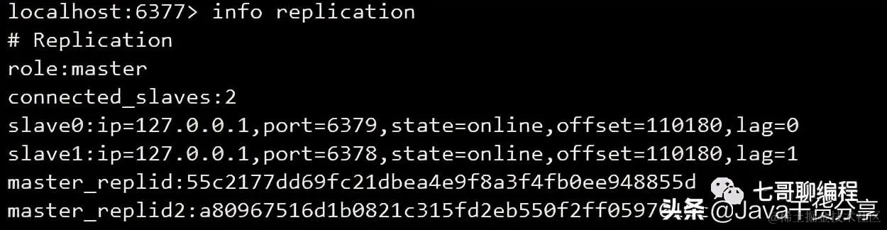 slave1:ip=127.0.0.1,port=6378,state=online,offset=110180,lag=1