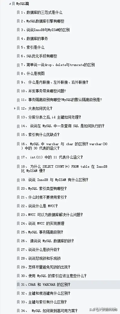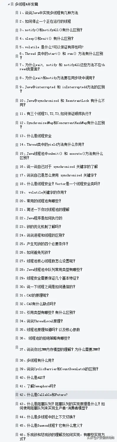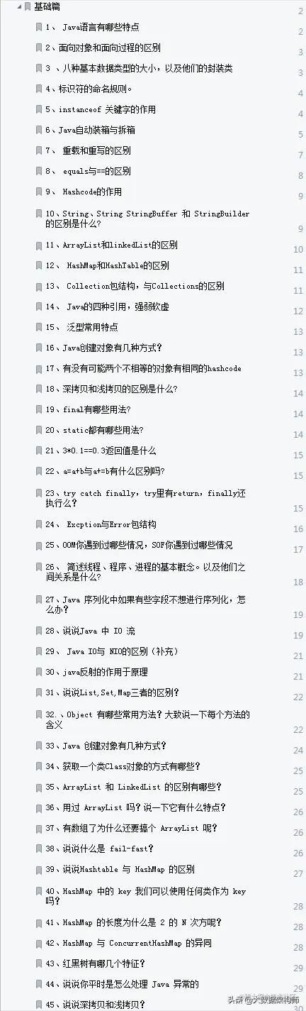 上面聊得都是比较简单的问题,好好注意一下就行,但是对于程序员最耗时的就是面试“Java八股文”的准备,我之前也在网上收集一些面试真题,但是太过杂乱无章;如果你想有一个好成绩,那么我推荐你学习一下,Alibaba开源的他们内部Java八股文题库;
