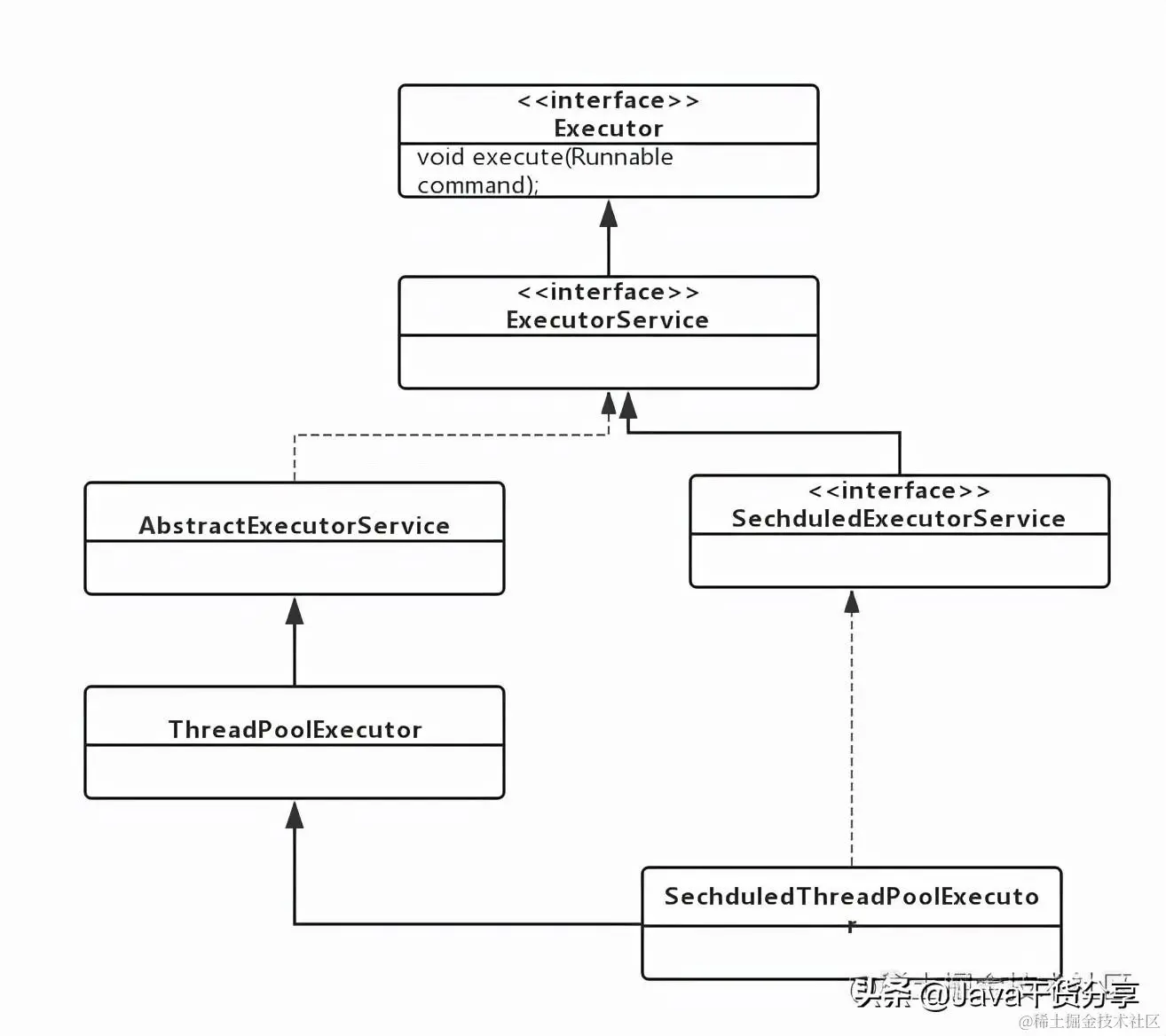Executor是顶级接口。关于线程池的总览示意图如下图所示: