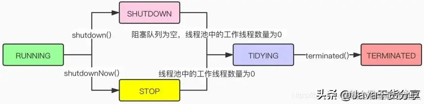 * 1> rs >= SHUTDOWN,表示线程池不是RUNNING状态