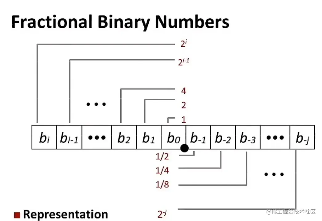 首先看一下定点数表示法。形如的表示,其中b的取值为0或者1,小数点左边的位的权是2的正幂,小数点右边的位的权是2的负幂。