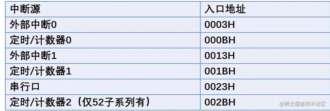 在上述图中有⒍个中断源的地址之间仅隔⑧个单元,存放中断服务程序往往不够用。这是通常放一条绝对转移的指令,转到真正的中断服务程序,真正的中断服务程序放到后面当中。