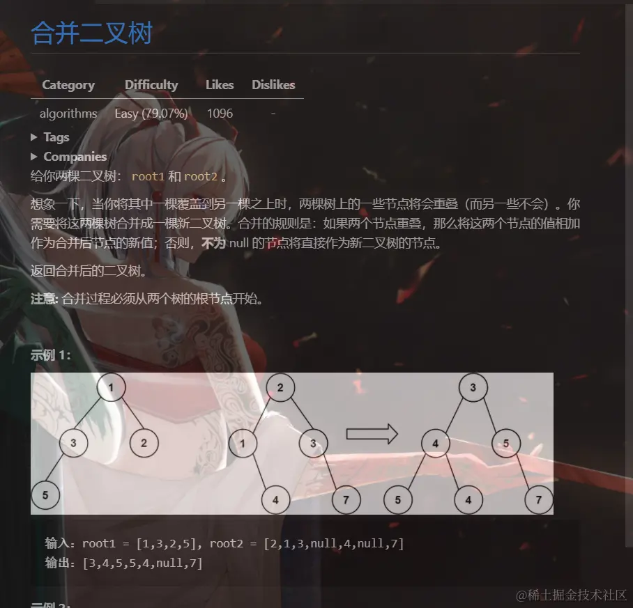 - 参数节点一个存在,一个不存在。就把存在的那个节点也赋值给不存在的,并不再往下递归
