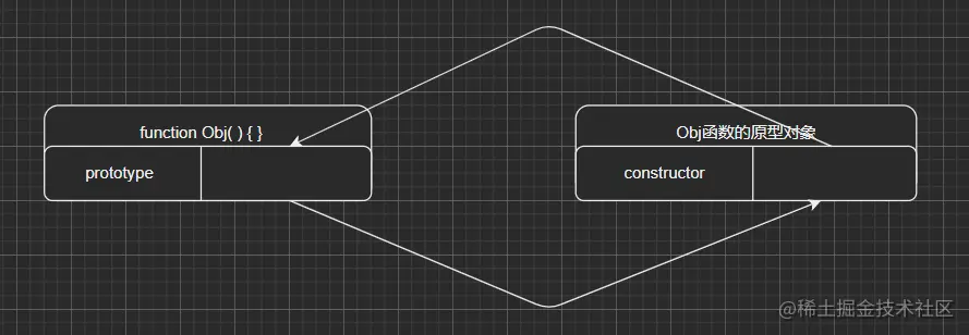 就是Obj中有prototype且prototype存着原型对象的地址,指向原型对象的地址;