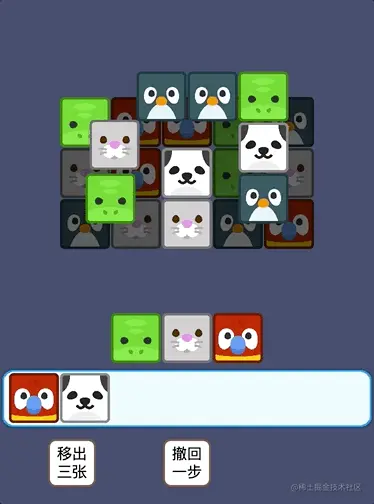 移出卡牌的数量: 记录的是当前需要移出几张卡牌,如果卡槽中只有两张牌,那么移出卡牌的数量就是 2,如果卡槽中超过三张牌,那么数量就是 3。