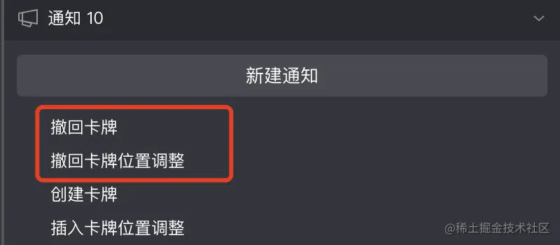 撤回卡牌: 用于向卡槽中的所有的牌发送通知,让上一步插入进来的牌撤回。