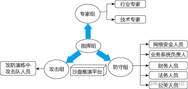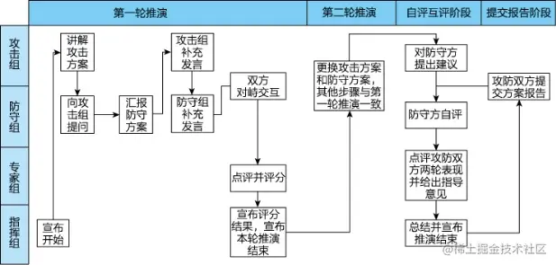 4)专家组:主要由组织单位邀请行业专家和技术专家组成,负责 对推演过程中攻防双方方案的可行性进行点评并打分。