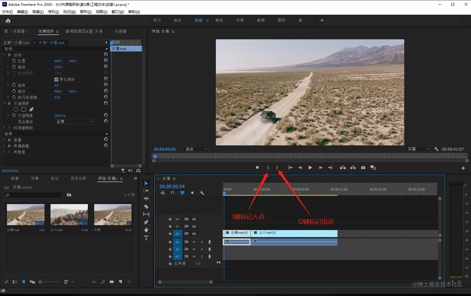 快捷键操作:标记入点快捷键为【I】; 标记出点快捷键为【O】