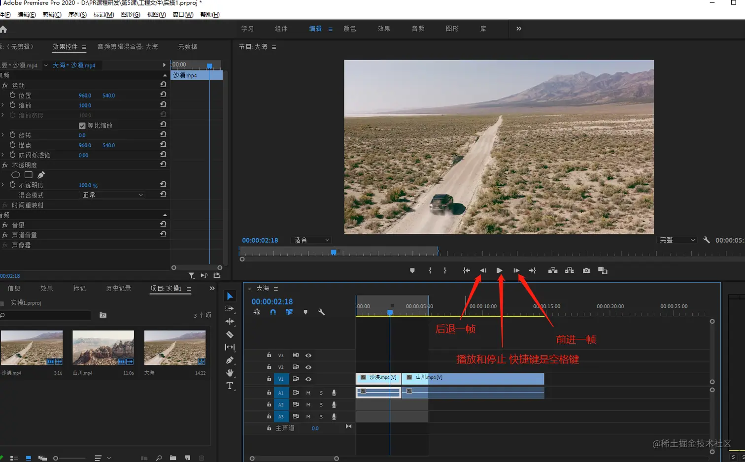 播放键,可以播放我们的视频,播放键的快捷键为【空格键】