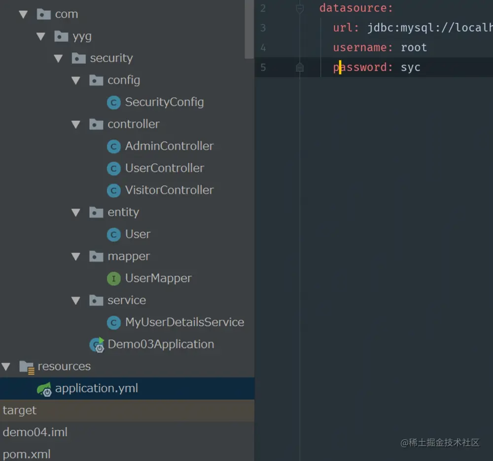 接在在service层,定义一个UserDetailsService子类,实现UserDetailsService接口,然后实现该接口中的loadUserByUsername()方法。这个方法的参数是用户在登录的时候传入的用户名,然后根据用户名去查询用户信息(查出来之后,系统会自动进行密码比对)。