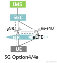 该组网是 5G 的 Option2 基础上的增强,主要增加了 eLTE从站。
