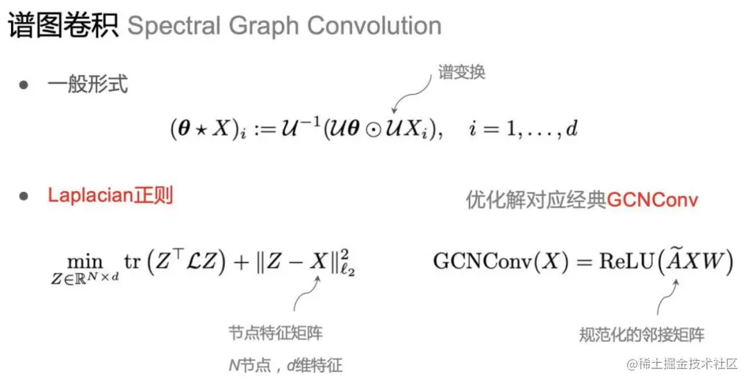 图神经网络特征提取模块可以写成图卷积的模式,与传统的 CNN 卷积类似,只不过在图上定义卷积不如 CNN 直观,不能用空间域窗口的方式平移得到,但是可以仿照傅里叶卷积的模式,定义图卷积的模块。这种卷积被证明和传统 CNN 具有相似的特征提取功能,共享了参数,并保持了重要的图结构性质,从而在图神经网络的学习中起到了很好的特征提取作用。其中一个很重要的模块是由谱图神经网络衍生出来的经典 GCN 模型,如果写成谱图的形式就是 Laplacian 正则化的过程。
