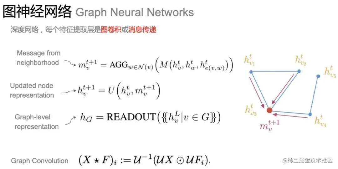 图神经网络是几何深度学习的一部分,研究具有结构属性、拓扑性质的数据的学习和预测任务。图神经网络的每一个特征提取层都会对节点的特征和连接的特征进行更新,这种更新模式被叫作消息传递模式。