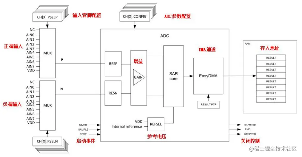 - 通过 EasyDMA 可以直接将采样结果保存到 RAM。