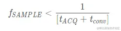 - 使用 nRF52832 的通用定时器定时通过 PPI 触发采样,实现连续采样。这种方式不能算是 ADC 本身的连续采样功能,因为它是借助了其他外设实现的连续采样。 采样速率由 SAMPLERATE.CC 控制,即定时时间长,采样速率慢,定时时间短,采样速率快,需要注意的是,使用连续采样模式的时候,采样速率应符合下面的公式: