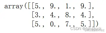 另一方面,对于任何输入数组,函数row_stack都等效于vstack。实际上,row_stack是vstack的别名: