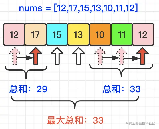 【输入】nums = [12,17,15,13,10,11,12]