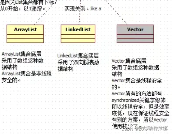 Vector:底层是数组,线程安全的,效率较低,使用较少